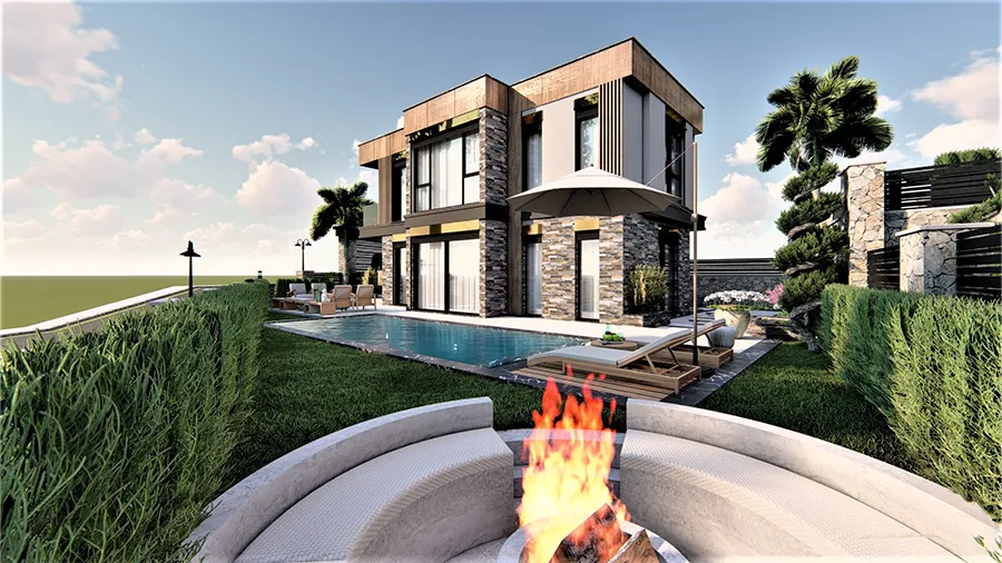 3 Dönüm Arazi İçinde 3 Adet Havuzlu Villa